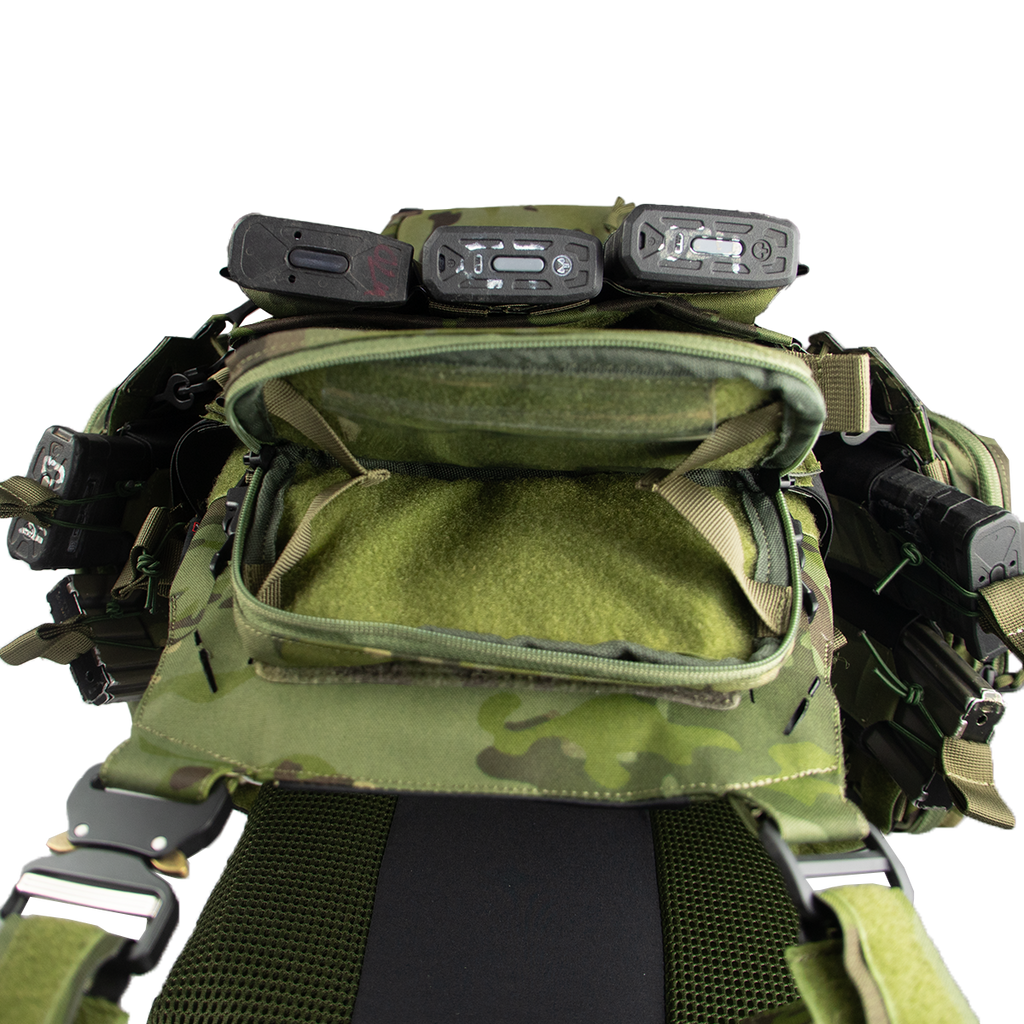 Cable Management Pocket Behind Front Platebag Molle Panel to Allow for Comms Routing